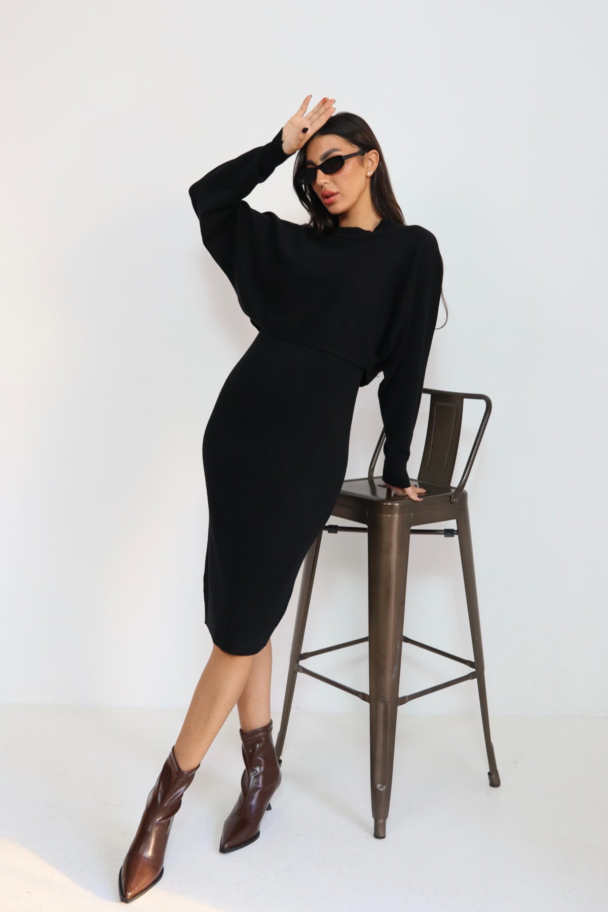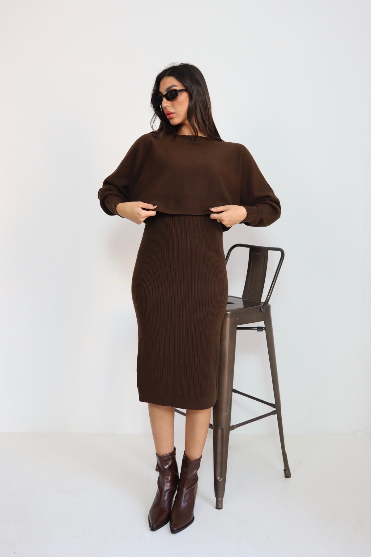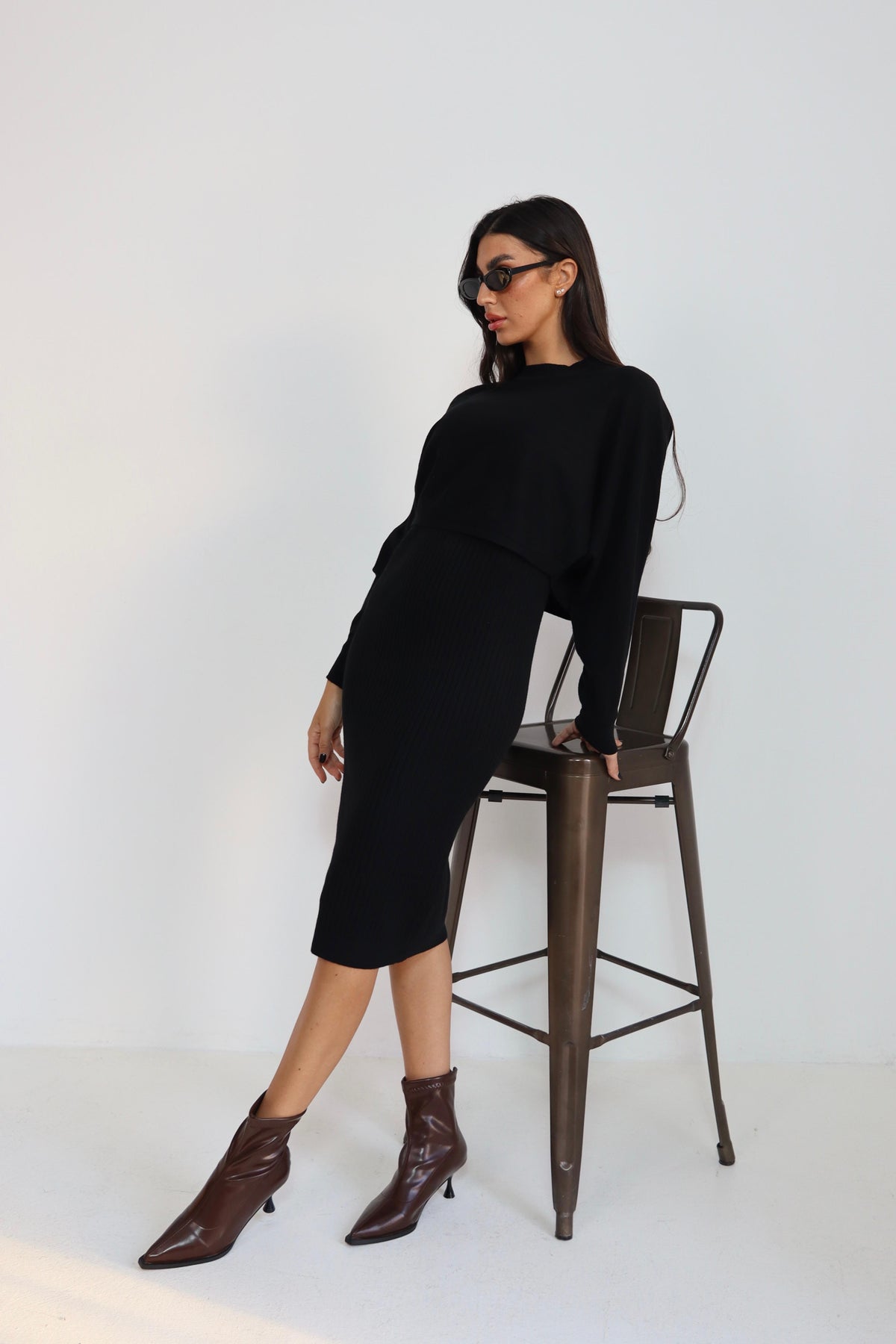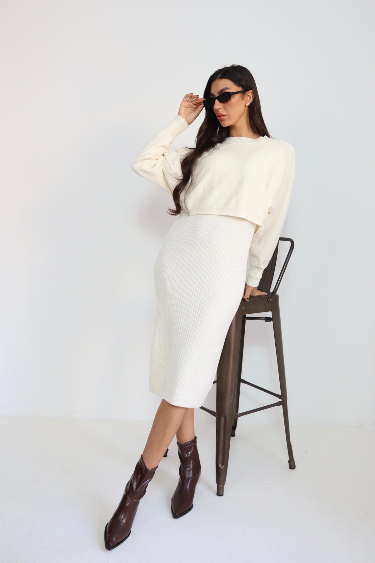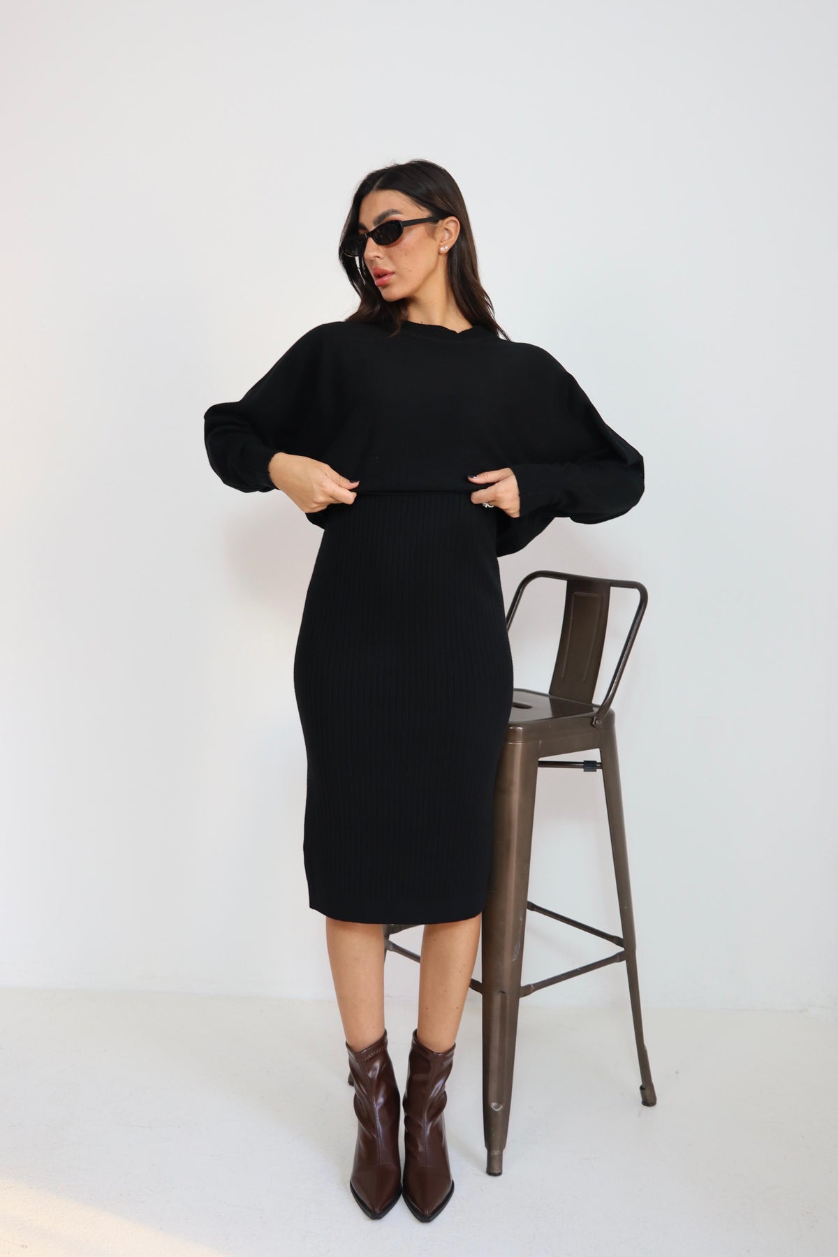 סט שמלה גופיה + חולצה קצרה בד סריג