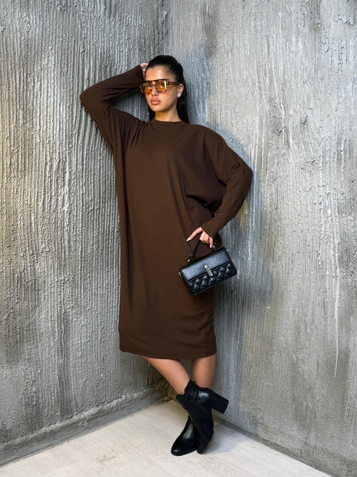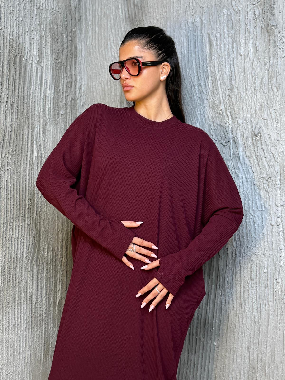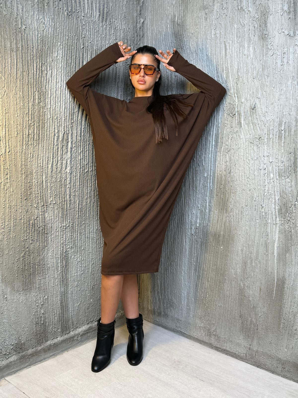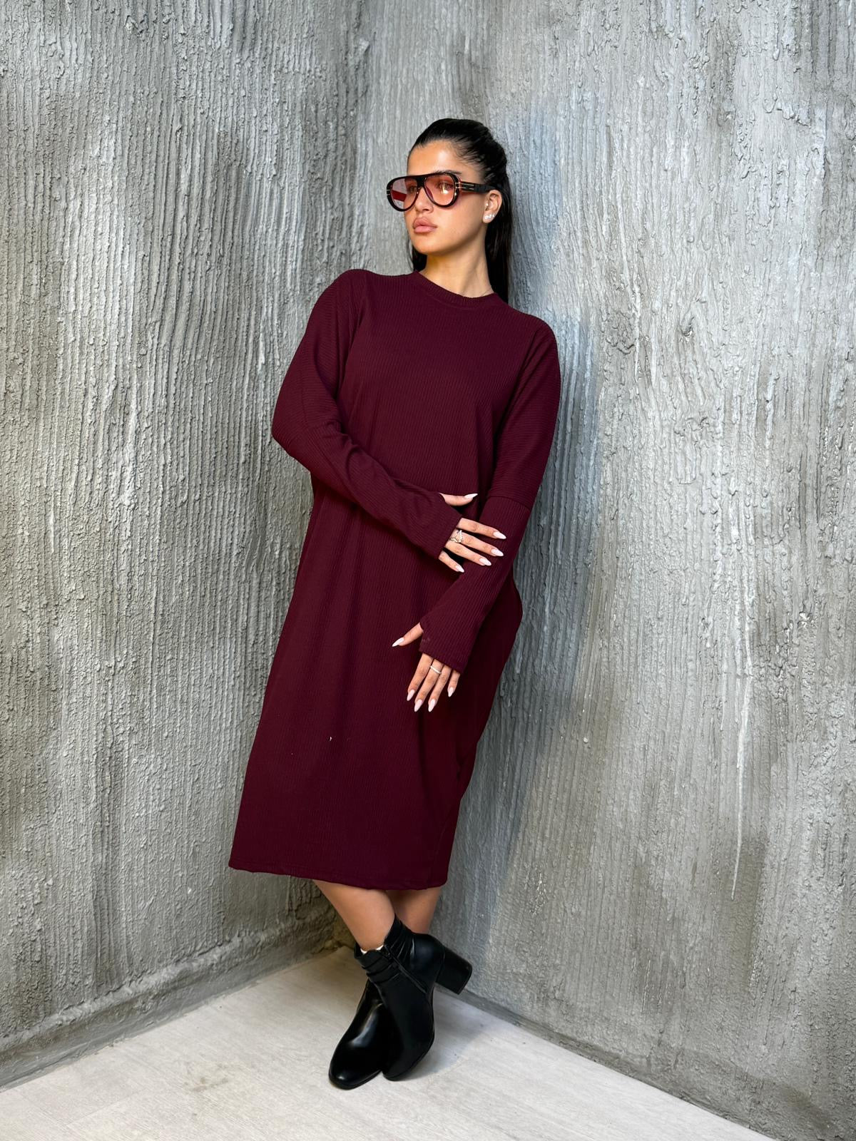 שמלה עטלף בד סריג