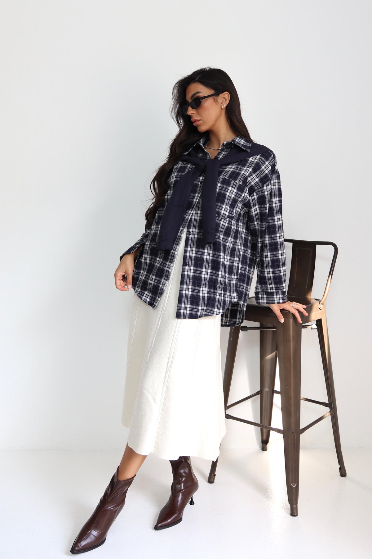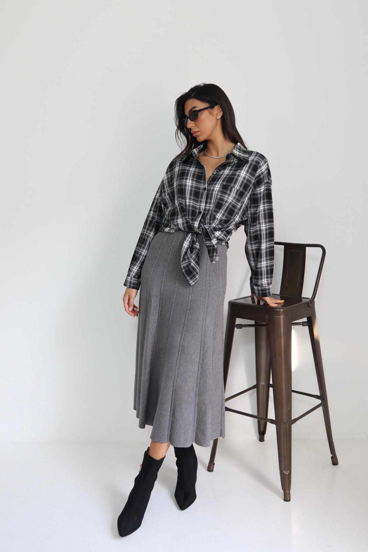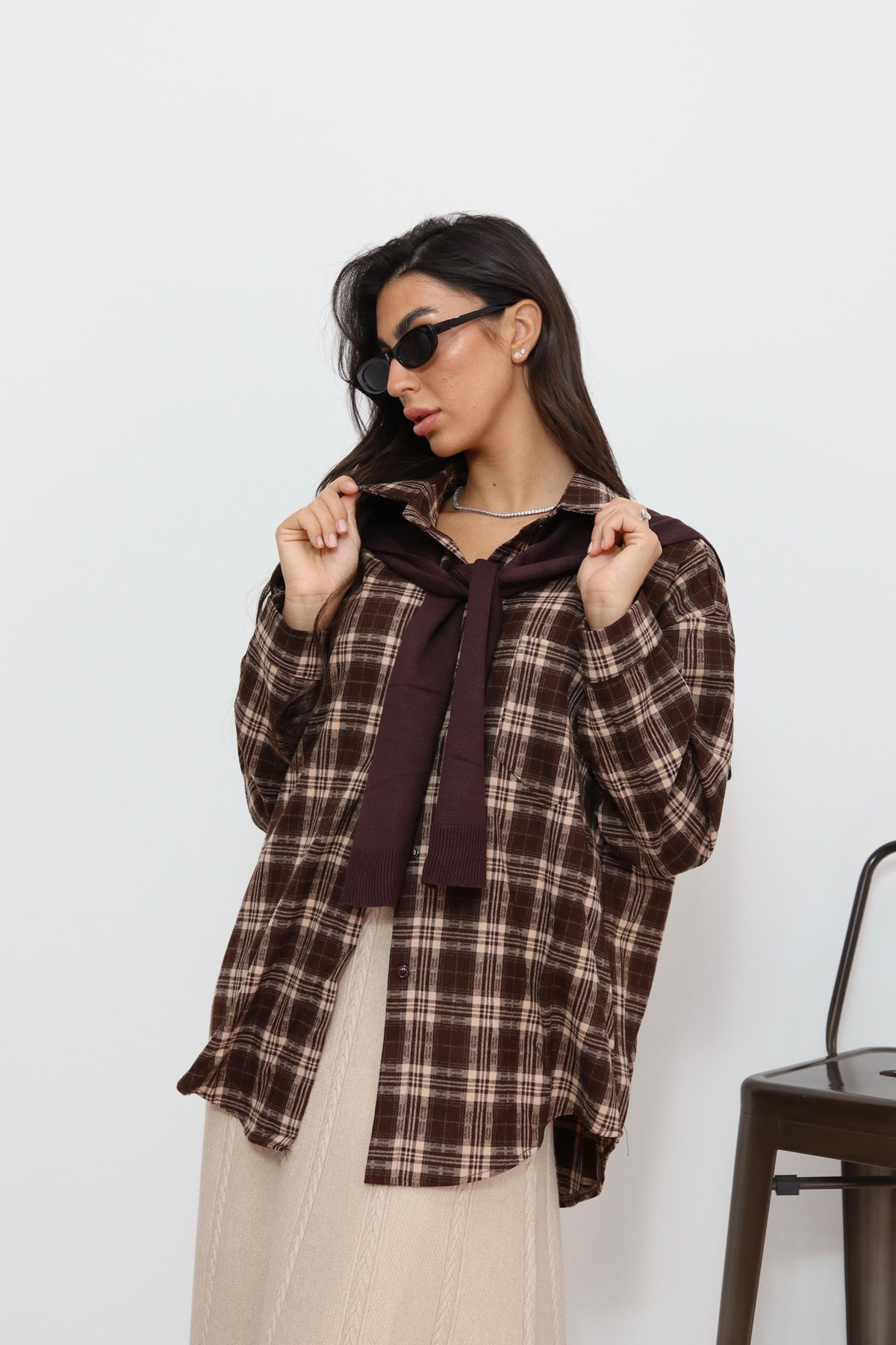 חולצה משבצות עם קשירה