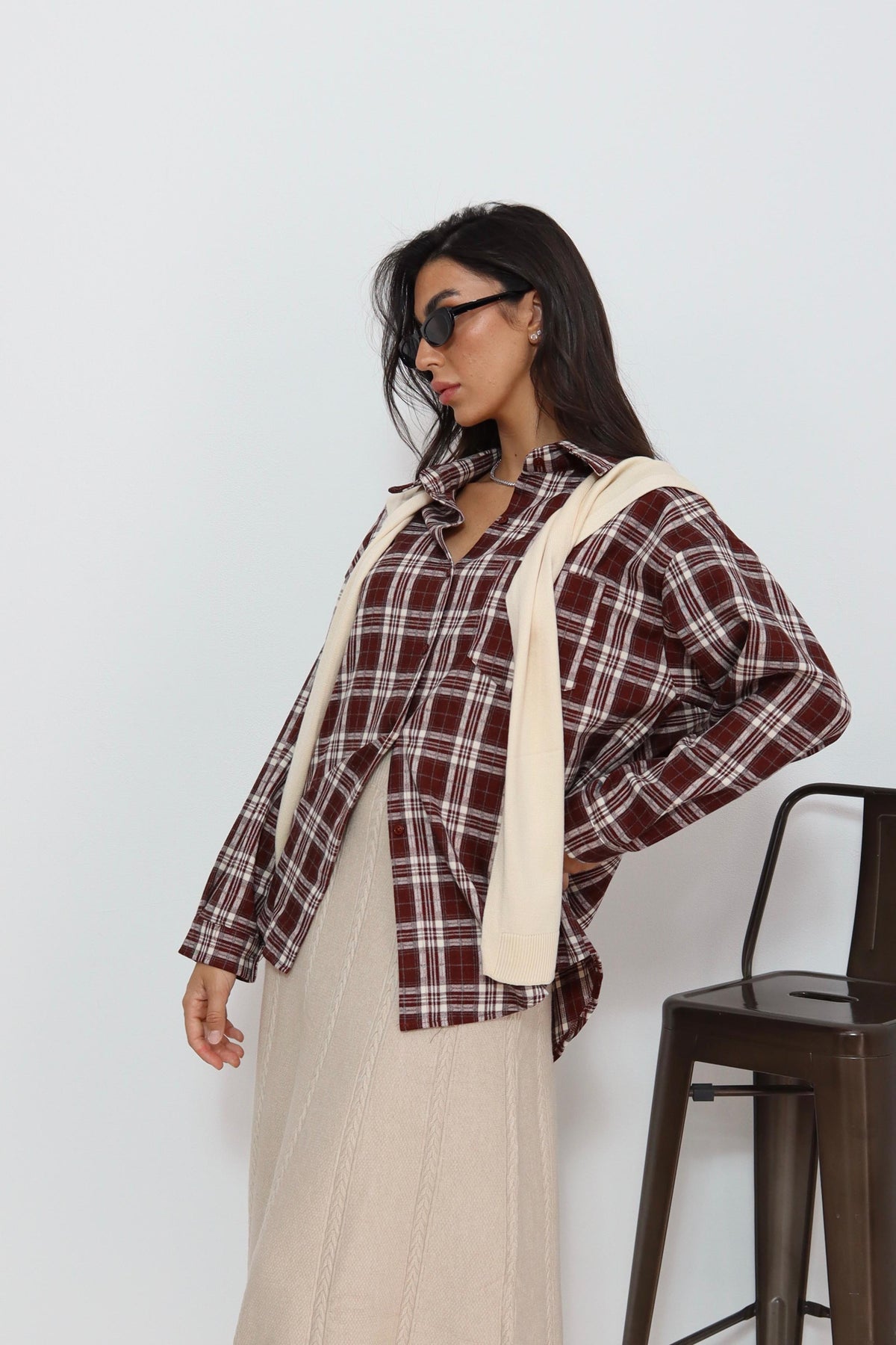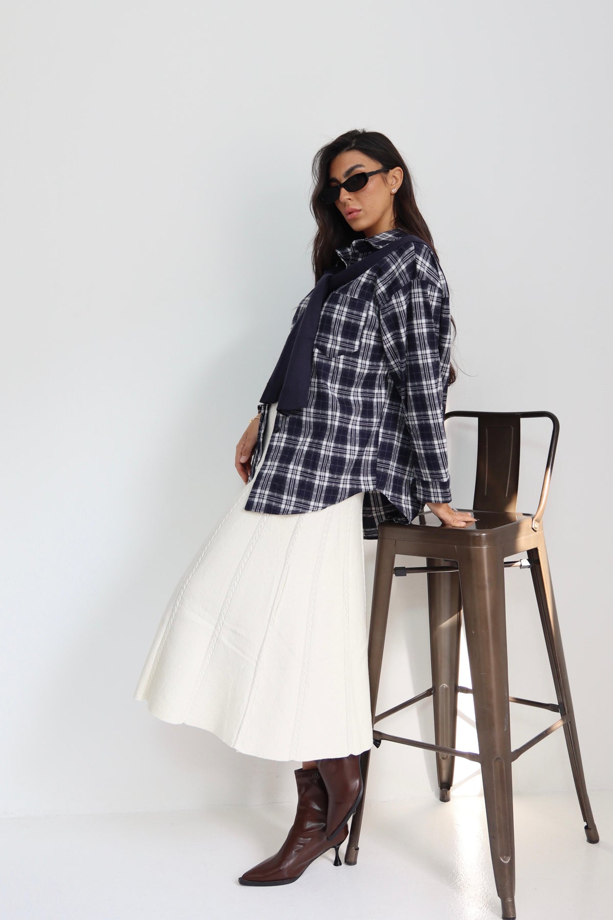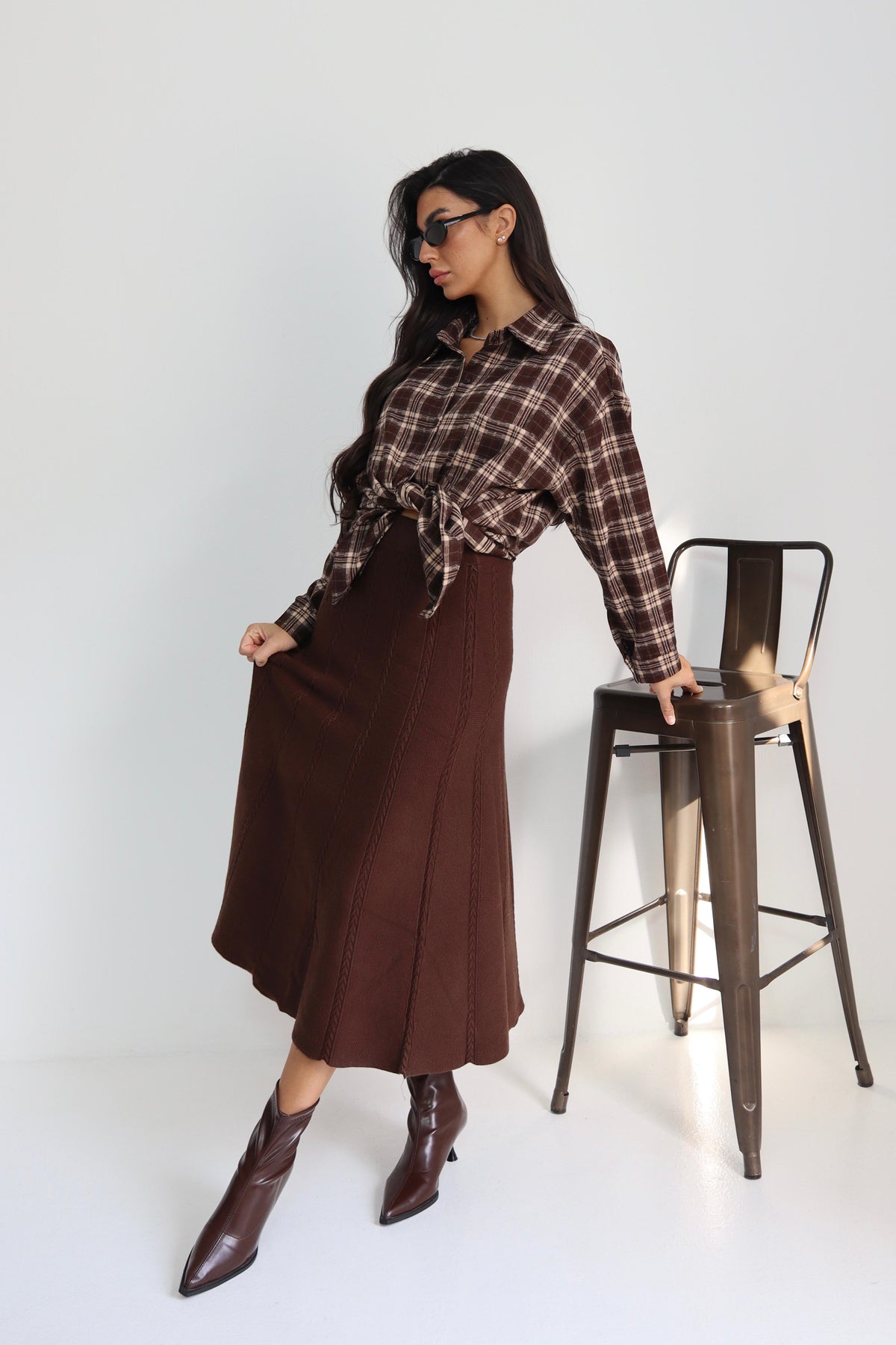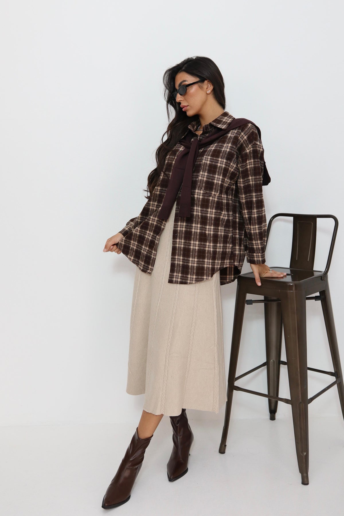 חולצה משבצות עם קשירה