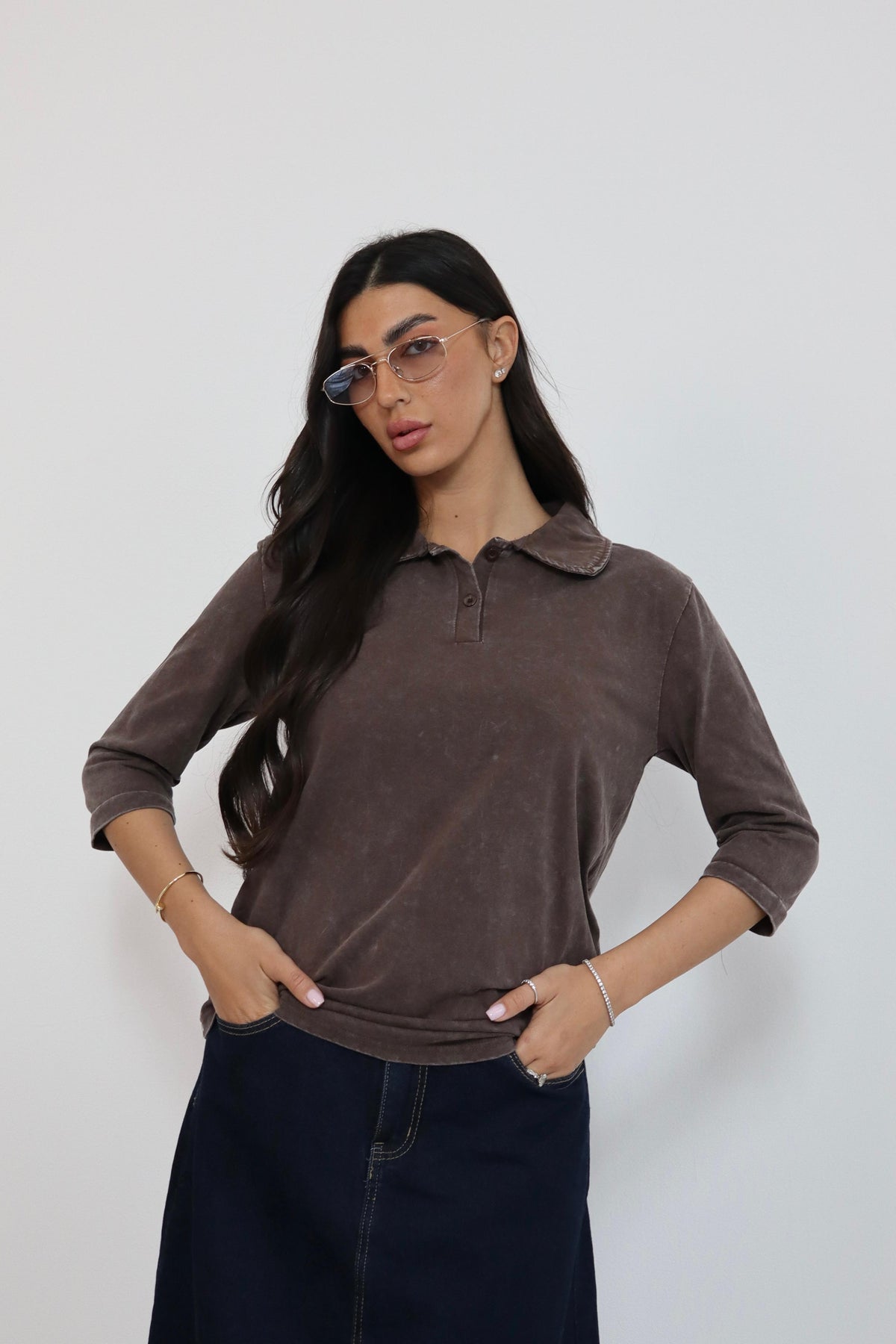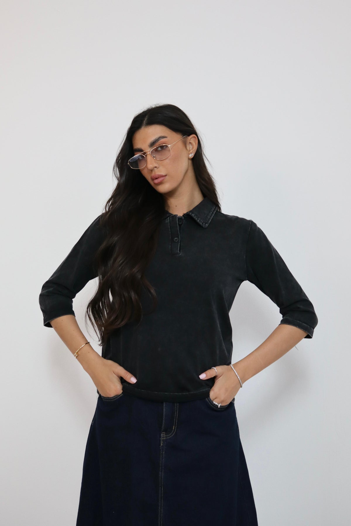 חולצה 3/4 צווארון וכפתורים