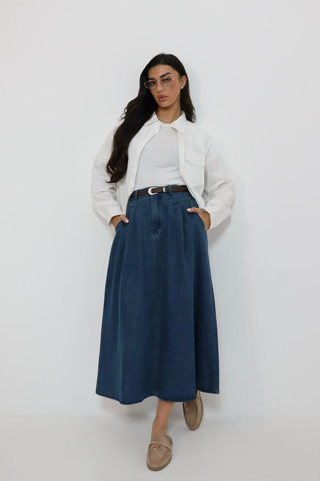 חצאית גינס עם חגורה בלון למעלה